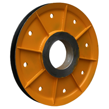 滑輪幅板采用幅板壓制成型,滑輪兩支點受力,與輪轂成三角形,加強滑輪的穩(wěn)定性,此結(jié)構(gòu)新穎,為我司獨有滑輪生產(chǎn)工藝,相同受力情況下,可減少滑輪重量,R槽為車刀成型,因此與輪轂軸的同軸度更高,R槽跳動小,性價比極高。